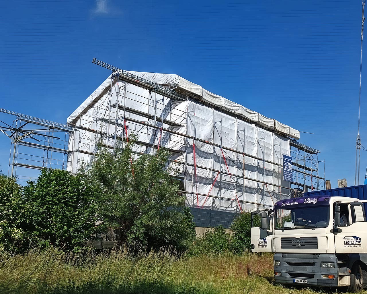 Ein Wetterschutzdach ist eine temporäre Überdachung auf einem Gerüst, die als wetterunabhängiger Schutz für Handwerker, Baustoffe und Fassaden dient. Es schützt bei Regen, Schnee, Frost oder intensiver Sonneneinstrahlung und ermöglicht so den kontinuierlichen Bauprozess ohne Verzögerungen durch Witterungseinflüsse.